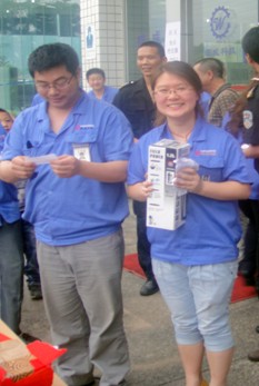 “Yes,我中了”,激動而開心的聲音傳來,那質樸而純真的笑容感染了大家,大家用熱烈的掌聲表示祝賀,共同分享著這份幸運,幸運一等獎經過幾次的抽取最終被銷售部的同事領回家啦。